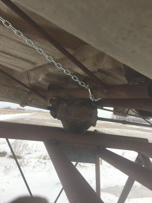 The end drive gearbox off an old center pivot irrigator serves as a turntable mechanism for the cab. One end of a 4-ft. long pipe is welded to the pickup’s frame under the radiator, and the other end is welded to the gearbox. The gearbox shaft-drives a pulley that belt-drives another pulley attached to the pickup’s steering shaft. “I just turn the steering wheel to turn the cab in either direction,” says Roney.