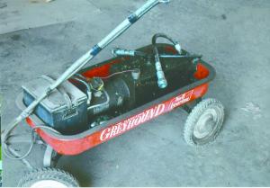 To solve the problem, he placed an electro/hydraulic unit from a 1-ton dump truck on an old Red Ryder kids wagon and hooked a 12-volt battery up to it. A pair of hydraulic hoses attach to the pump, and the battery is wired to a switch on the wagon handle. Mills connects the hoses to the drill’s lift cylinders, then pushes the switch to raise the row units.