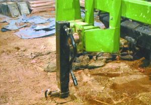 “It takes just a few minutes to crank the jacks until there’s plenty of room under the drill,” says Mills. “We paid $120 apiece for the jacks. They’re rated at 8,000 lbs., apiece so we know they’ll hold up.”