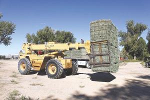 “My home-built, loader-mounted bale squeeze is designed with hydraulic arms that squeeze 21-bale bundles of small square bales, which makes it work great for stacking in pickups and on flatbed or semi trailers. It eliminates a lot of labor and works fast – we can load a 53-ft. trailer in only about one hour,” says Loy Sasser, Mack, Colo.