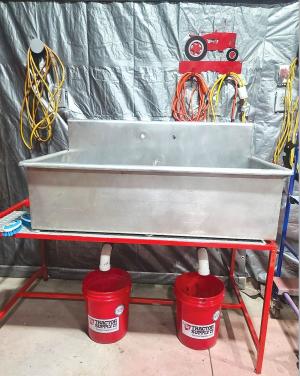 Lori Lynn Parkin and her husband put a lot of time into refurbishing Farmall tractors, removing rusted and paint-scarred parts that require solvents for cleaning. For years they used a small tank for soaking parts, but Lori Lynn found an old commercial-quality stainless washing sink on Facebook Market Place that she says works a whole lot better. She says the stainless tub is ideal because it’s nearly 4 ft. wide, 2 ft. across, and about 18 in. deep. Solvents they use to clean parts don’t affect the tub surfaces, and it’s easy to clean.