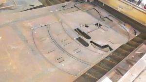 Waa used his plasma cutter to fabricate the body pieces out of 1/4-in. thick sheet steel that came from metal workbenches damaged in a fire. “I pre-cut slots, so the pieces connect front and rear like a tongue and groove arrangement. I put a flex joint in the middle of the grinder so I can slow down, creep ahead and back up while the wheel is turning,” he says. The pto shaft extends out as the grinder flexes. Waa runs the grinder with his tractor at half throttle.