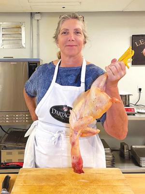 Today, in addition to the Gallus brun breed that matures in 85 days, her farmers also raise Rock Cornish broilers. They’re grown for 54 days or longer. They also thrive on Daguin’s ration of locally raised grain and vegetables.