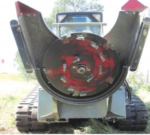 Other attachments are equally unique. They include a tree saw, stump grinder, and a combination attachment they call the grinder saw. It has a 1/2-in. by 30-in. dia. blade with five replaceable, 4-sided Quadco teeth on its perimeter, four on top, and 10 additional teeth on the bottom. As it cuts trees up to 6 in. in diameter, the teeth grind away at the wood. When finished cutting, simply lower the blade over the stump to grind it away.