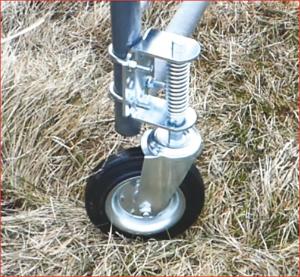 The newest model, 945, has spring suspension and comes with an 8-in. solid rubber tire with a steel hub and roller bearing. The biggest difference is how it mounts to tube gates with a newly designed mounting bracket using the included U-bolts, making installation quick and easy. For installation on other style gates, the punched square holes accommodate 3/8-in. carriage bolts. The model 946 has a 4-in. wheel that works well with residential gates.