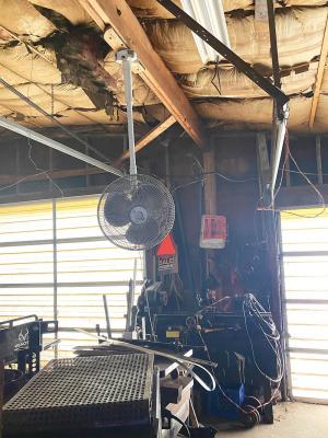 He repurposed the second fan to keep his workshop comfortable. “I had no room on the floor, and it was getting in my way,” he says. “So, I got to thinking for a place to put it and decided to hang it from the ceiling above my woodstove. When the fan gets going, it moves heat around my shop.”