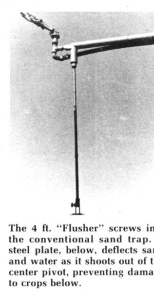 "There are sand traps on the ends of the pivots, as on most systems. You just unplug them and let the sand drain out. They don't hold enough sand, though, and if I didn't empty them every hour or so they would back up and plug my nozzles," Geiger told FARM SHOW.