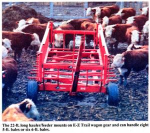 The hauler/feeder can handle eight 5-ft. bales. or six 6-ft. bales. Sells for $3,280.