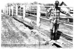 He built it using 10-in. dia. concrete-filled posts sunk 4 ft. into the ground and heavy-walled oil field drill stem for cross bars. He used steel auger tubing - minus the flighting - for the posts. He set them in the ground, cut holes in the sides, and then inserted the crossbar railings. Once the fence was set up, he hired a local concrete outfit to come out and fill the posts. It malces a solid anchor for the feeder he set up at the base of the fence.