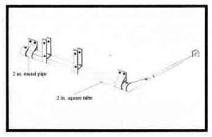 The lifter consists of a 2-in. sq. steel tube that rides inside a pair of 2-in. dia. round pipe "hinges". A 1-ft. long spring mounts on a short steel arm that's attached to one end of the tube. The spring bolts onto the side of the truck and is equipped with a threaded bolt that's used to adjust spring tension. To open the endgate, you put your toe under the ramp and flip the gate up until it's waist high, then raise the gate the rest of the way by hand. The pipe hinges are welded to a pair of flat steel plates that bolt onto the endgate. Brackets are used to bolt the square tube to the drop gate, allowing it to be slid over sideways if the truck is backed up to a chute.