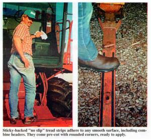 "Safe Step" treads are sold in strips with an epoxy adhesive on back. "They come pre-cut with rounded corners, ready to apply. They work great on combine headers, pickup bumpers and running boards, wagon tongues, around spray tanks, etc.," says distributor Daryl Siders.