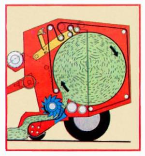 The problem with new round bales that chop hay on-the-go, as it enters the bale chamber, is that it often gums up the belts. The Welger baler has a chopper mounted right behind the pickup. Chopping hay and straw makes denser, heavier bales. High-moisture forage bales are usually bagged or wrapped.