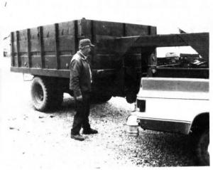 Nelson cut the truck off behind the cab and built a gooseneck hitch for it. The trick was figuring out how to drive the pto-driven hydraulic lift which had been powered by the truck engine.