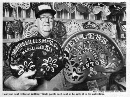"People like to collect them because of the stories they tell," says Willmar Tiede, LeCenter, Minn., who has one of the country's biggest collections of cast iron farm implement seats. He's also an officer in the Cast Iron Seat Collectors Association, which has more than 600 members.