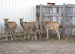 "Pere David's have a body that's shaped similarly to a donkey, with a tail that ends in a black bush, longer than the tail of any other species of deer," says Darling from her "Liar's Lake Breeding Farm." "They have a long slender neck unlike most other deer, and the head is sometimes described as being like a horse. The hooves make a clicking sound when walking, and the male's uneven antler tines point backwards."