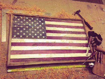 Old barns were typically painted red and white. A Springfield, Ill. reclamation company decided to add a little blue to make barn wood flags.