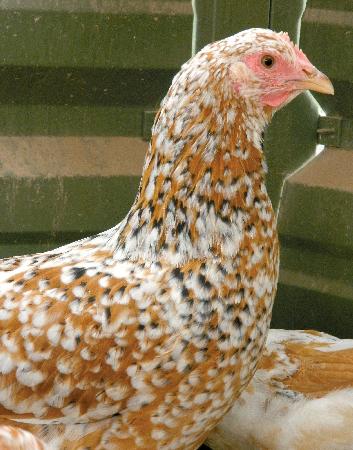 "The idea was to take a practical farm chicken and dress it up in a colorful package. Alohas are supposed to be strong, tough, easy-care chickens "with color added on top," she says. "I floundered around trying mixes of Exchequer Leghorn, Speckled Sussex and New Hampshire Red, but I didn't have any real luck until I found a few small "mystery chickens" of unknown origin in Phoenix. They were small in size, but had incredible spotting."