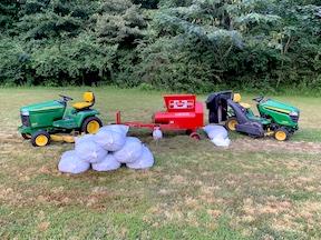 “When harvesting grass, I use a regular Deere riding lawnmower with a power flow bagger. I cut the grass and let it wilt for a few hours before dumping it into the Bagger. The 7-bushel hopper is enough to fill a 40 to 60-lb. bag. I spray it with about a gallon of water with two to three cups of molasses to help the bacteria grow.