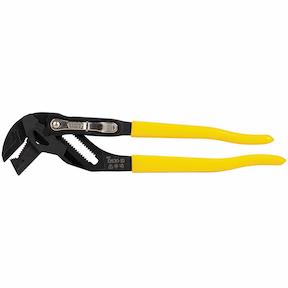 These dual-purpose pliers from Klein Tools work like both an adjustable pipe wrench and large-capacity pliers. The Plier Wrench has a two-in-one set of jaws that functions as a wrench on flat-sided fasteners and as a V-jaw pliers for pipe, hex bolts, conduit, and other round objects.