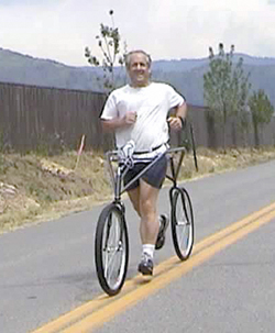 Do your knees hurt every time you break into a trot? If so, Walter Dandy's RunBike may be for you. It's a modified bike frame that carries about 1/3 of your weight while you get a cardiovascular workout.