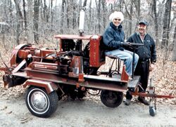 Krob mounted the engine on the rear of a triangular-shaped frame made of 3-in. channel iron and put three wheels under it. He put a wagon-type axle under the engine and a pivoting dolly wheel in front.