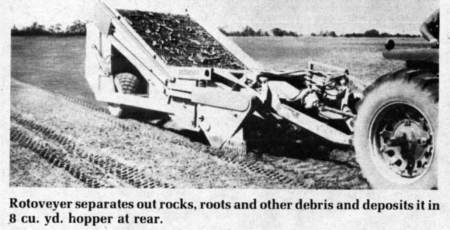 "At first, nobody would believe me when I told them what it would do," says Joe Batten, Whiteville, N.C., who bought one of the first Rotoveyors sold in his state. "Now that they've seen it, they believe the Rotoveyer can clear an 8-ft. swath. It operates most efficiently at 7 to 8 in. deep. Clears 1 to 1 1/2 acres per hour. After a once-over operation, the land is ready for planting, according to Shanks.