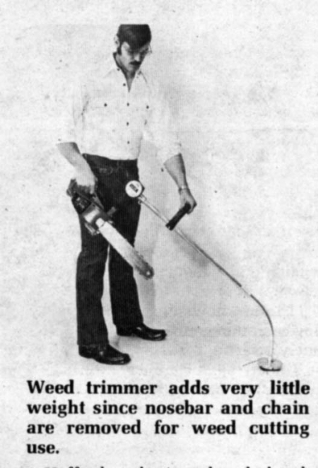 In minutes you can convert most any chain saw into a powerful monofilament grass and weed trimmer, thanks to the new Trimette GSA (chain saw attachment) from Hoffco, Inc., Richmond, Ind.