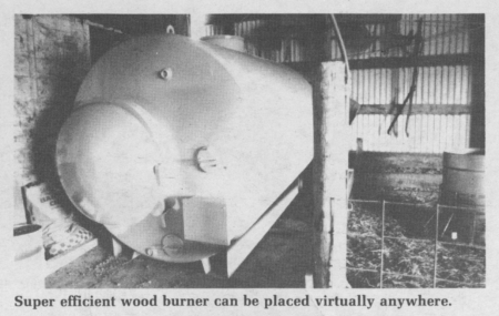 The furnace is designed to be placed outside in a shed, garage or barn and can be used to heat buildings up to 500 ft. away through insulated underground pipes. A tightly insulated box is constructed on site around the firebox and its water jacket, which contains 1,500 gal. of water. Just 2 to 3 hrs. of burning in the stove brings the water up to about 200 degrees, which is enough stored warmth to heat the average-sized home for 2 to 3 days in the dead of winter.